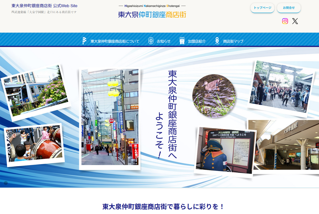 東大泉仲町銀座商店街 公式サイトリニューアル 2025.12.20 2025年12月、東大泉仲町銀座商店街の公式サイトをリニューアルしました。東大泉仲町銀座商店街は、東京都練馬区の西北部に位置し、西武池袋線・大泉学園駅の北側に広がるエリアにあります。昔ながらの人情と活気が今も息づく、地域密着型の商店街です。店独自のサービスや名物、品質の良い品物を数多く発見できるこだわりのお店や、人気のチェーン店も並んでいます。交通量も少なく、ゆったりと安心してのお買い物ができる商店街です。